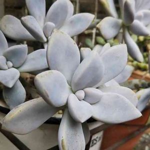 おはようございます。 今朝の蒼星。 朧月の色違いとか、淡雪の色違いとか伺いますが、素人にはよく分かりません(⁰▿⁰;)どちらとも違うブルーの強めな色合いが魅力的です。実物はもっと青みがかっています。 寒さに強いと聞くので、昨夜は外に放置しようか迷ったグラプトさん達ですが、やっぱり心配になり暖房のない玄関へ。 ベランダは一応風除けしてるので、可能な限り外で頑張ってもらおうとしているのですけどね! 過保護かもしれませんが、霜で傷まないか心配になってしまいます。 今日は晴れているので、気温が上がってきたら他の子達も出してきて日光浴させたいです。