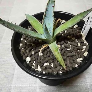アガベチタノタ ブラック&ブルー 植え替え完了しました😃 黒い棘が特徴的ですね〜😁
