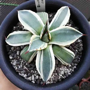 アガベ 王妃雷神白中斑 初めて買ったアガベです😄 でもなかなか大きくなりません😥