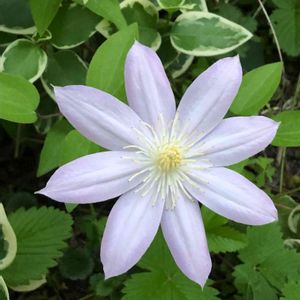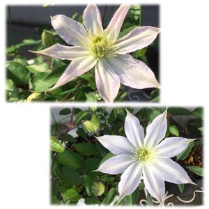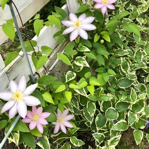 クレマチスの桜姫。昨日咲いたばかりの時は薄いピンク色に見えた花びらも、今朝は真っ白に見えるほどきれいに開いていました♫