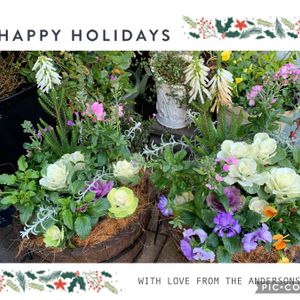 YS仕事に行く途中🍀 グッと寒くなり🚲手袋🧤🧢🧣必須☹️ お店の前に寄せ植え☘️🌸🍃🤍💜