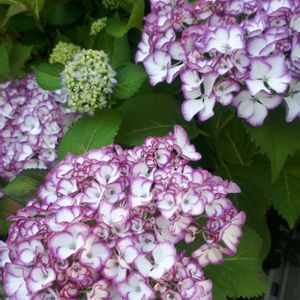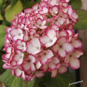 赤紫色の縁取りのあるアジサイ(紫陽花)が咲いていました。 ジャパーニュ ミカコという園芸品種だと思います🌼 定番の青や赤のアジサイとはまた違った趣がありますね😃