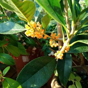 わが家のキンモクセイも咲き始めましたよ😃 小さい鉢ですが、下の方から咲いてきました♫ 去年は咲かなくて、今年こそ!!っと思ってたけど、良かった〜😂