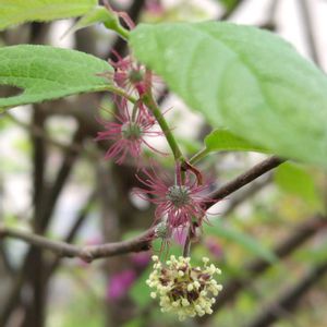 何年か前から我が家の一員になったヒメコウゾ(姫楮)🌿 秋にはオレンジ色の実を付けていたけど、今付いている丸ぁるい白っぽいのとポヨポヨした赤いのはお花でしょうか…?😅 不思議で面白い植物です🎶😄 ⬇️ 赤いポヨポヨしたのが雌花❤️ 小さな白いのがいっぱい付いた丸いのが雄花🤍 …とらさんに教えていただきました🤗