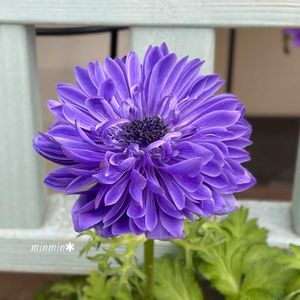 アネモネ オーロラ 2色ベランダで元気です 紫の八重咲きアネモネと菊のような咲き方の花 どちらも、小春日和の太陽☀を浴びて素敵です