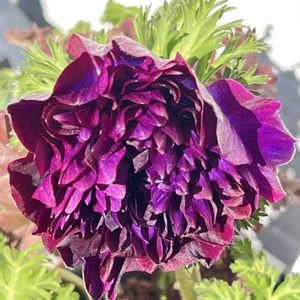 オーロラ、開いちゃった😳 昨日のHCで私を釘付けにした子。艶のあるチャボのお尻のようなふさふさ姿に惹かれてお持ち帰り。 ぐるぐる巻きのビニールを解いてあげてなかったなぁと今朝庭に出てびっくり🫢あら、全開。 そうか、あれはまだ蕾だったか。 待っているパンジーには会えず仕舞いになりそうな今季、初めてのオーロラとお知り合いに💜🖤
