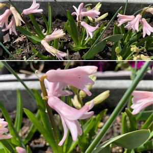 いつ植えたのかわからないけど ミニヒヤシンスまるで踊ってるようで可愛く咲いてます。