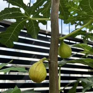 いちじく🟢🌿バナーネ 今年も高く伸びた2m超の新枝の節々に実がつきました いくつ採れるかな……🤔 収穫が待ち遠しいね 2025.8-72