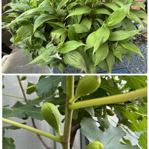 家の周りの花木😊 狭いスペースに殆どが鉢植え🪴 ①イチジクに実が付きました デュランタ宝塚、ユリ、そしてミセバヤに蕾🥰(昨年のミセバヤの開花は11月でした) ②ベランダから玄関に移動した花😊 タイタンビカスもかなり蕾を持ってます😍
