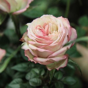 ミニバラ マンダリナコルダナ こちらも旅行にいっている間に無事開花。購入時は淡いオレンジ色だったけど、グリーンかみの渋いクリーム色に。この色も好きだな。