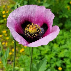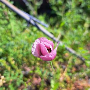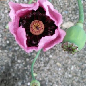お昼の散歩道です。 砂利の採掘場の前で見つけた花です。 たぶん、栽培禁止植物のアツミゲシだと思います。 大麻の原料になるとの事だと思います。
