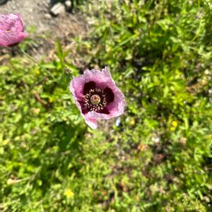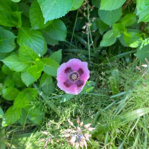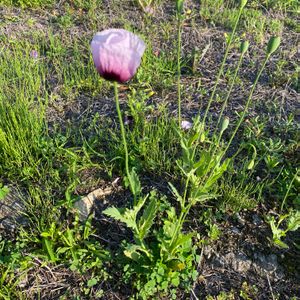 ヤバイ植物! 「アツミゲシ」(アヘン法で 栽培禁止) ワンコの散歩で 河原で咲いているのを見つけた。 再確認の為 現場へ戻ると、先客がおり 既に警察へ連絡済み とのこと☹️ 数分後 警官が到着し 後処理を お願いしました。 一件落着ですね😊