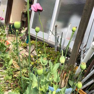 とある県営住宅の花壇にて 所謂違法なケシのため警察に通報しました。 仙台で見たのは初めてです。 ナガミヒナゲシと同じように繁殖は避けられないでしょうね。