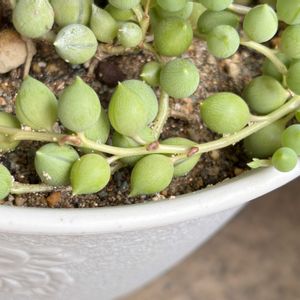 こんばんは 今日は我が家の多肉植物さんをちょこっと紹介しますね 昔子供の頃、おばあちゃんの家の植木鉢にあって ネックレスの様で面白いと思っていました 私も真似してみました 去年連れて帰った時は お花が咲いていました 今年は咲いてくれるかな?