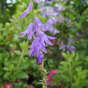 カンパニュラ、ホタルブクロが咲いています その他ホスタにジギタリス ジギタリスは2番花といいますか、主は枯れてしまって脇から伸びてきたのが小さく咲いています 葉っぱはハダニ?日焼け?分からないけどボロボロになってました