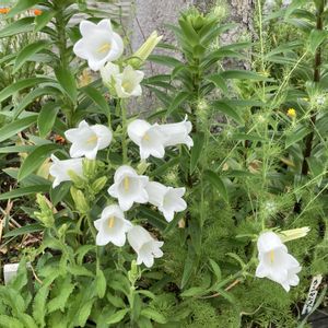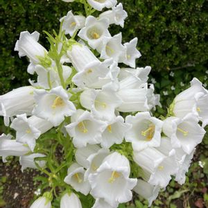 カンパニュラ キキョウ科ホタルブクロ属😊 和名はフウリンソウ、ツリガネソウなど。白い清楚なお花でした🤗