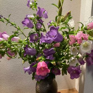 病院の生け花 我が家のカンパニュラが咲き始めました💜 爽やかなパープルカラーがこの時期にぴったり😍