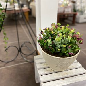 おはようございます☔☺️昨日始めての寄せ植えの教室に行って来ました。30分位で仕上げました。(土、道具は用意されてました。)