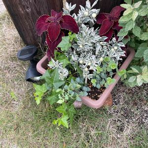 こちらの3種類で寄せ植えてみました。 お花と触れ合うのは久しぶりですが、本当に癒されています。 オレガノミルフィーユのボリュームが出るまで、見えちゃう土は人工物で埋めています。