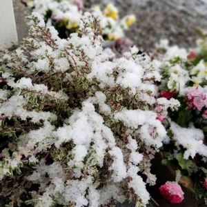 おはようございます⛄️ 寒い😨❄️ 雪が降ってます❗️ お外一面雪☃️景色❄️ ストックもビオラもみんな雪のお布団で 寝てたのね😅 今日も1日 元気で頑張りましょう❤️