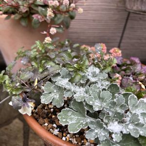 こんばんは 寒い🥶1日でしたね ここ九州福岡でも、朝6時過ぎからシンシンと雪が降り始めました 朝のうち雪を被った鉢植えをいくつか屋根のあるところによけましたが、油断をしてたらあっという間に鉢植えたちが、雪を☃️❄️被ってしまいました(ごめんなさい🙏) 今日は雪の日のpicです お花たちに申し訳ないです