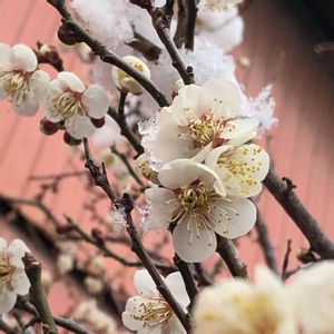 おはようございます😃 咲いたばかりの梅の花にも、うっすらと雪化粧❄️ さて、今日一日、何をして過ごそうかな〜