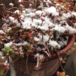 踊る虹の玉にも❄️ 昼頃までのはずが明日まで降るらしいです😖😖😖 頑張って我が家の外組多肉達❣️