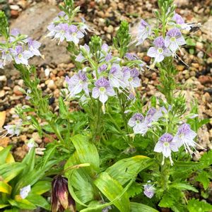 ミヤマクワガタ(深山鍬形) オオバコ科 ミヤマクワガタは日本固有🇯🇵の小型の高山植物⛰ 花弁は淡い紫色から赤紫色💜❤️中に濃い紫の筋が入っています💙 オシベが2本突き出ています♈️ 花後に小さな果実がつきますが… クワガタ(鍬形)はカブト(兜)のことですが花ではなく花が終わり果実に付くガク(萼)の形が兜の鍬形に似ることから呼ばれています🤗 2022.7.29 撮影🤳 白馬八方尾根に咲いていました⛰