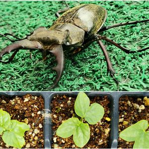 アケビバナナ 無事に冬を越える事ができました。 が、親は秋にハダニが発生! 耐えきれず枯れてしまいました。😅 現在、子株が4株です。 下ではクワガタが動いていたのでパシャリ。 虫嫌いの方すみません。😃 ちなみにモンキーバナナもいましたが同じくハダニにやられて冬を越える事が出来ませんでした。😭
