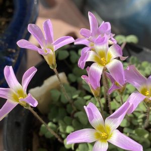 オキザリス、桜姫かな❓ 蕾に濃いピンクの筋が入ってます💞 お日様を浴びて咲いています🌸