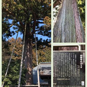 塩船観音寺の大杉です。夫婦杉で左右にあるんですが、この左手の杉が目立っています。幹周り5.7m樹高43mで都指定天然記念物です。左上が北側から、左下南側から撮りました。名物のツツジはまだ咲いていませんでした。🌿
