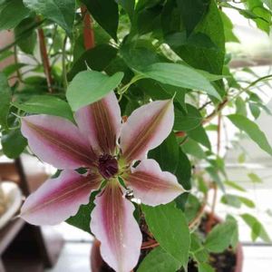 初クレマチス💕 昨年(初春頃かな?)10センチほどの苗を70円で購入。 しかし、クレマチスのことをよく知らなかった私はあまりのびず、花も咲かず、冬には枯れちゃったから抜こうか迷ったのです(笑) でもやっとお花を見せてくれました~。嬉しい💓