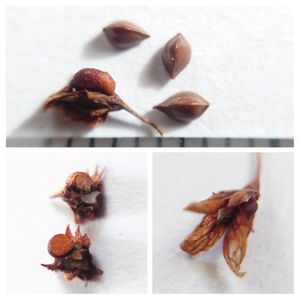 エゾノギシギシ (↘)こんな感じで中の方に1個の果 実が入っています😁 (↙)カットしてみました😂 断面に瘤体と果実が見られます 。丸いのが瘤体、3稜形に見え るのが果実。下方はイソジンを 垂らしたもの😆果実は青紫にな りました(ヨウ素デンプン反応)。 小学生気分です💓✨ 瘤体って何のためにあるのでしょうね😶🙄