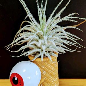 きっとお母さんなら植物入れて楽しめるっと 娘婿の米子のお土産 「目玉おやじの楊枝入れ」 とても嬉しいです😁 なかなかのチョイスです👍 早速どれにしようか…… (選ぶの楽しい〜💓ワクワク〜) で………こちら、銀色でフワッとしたチランジアテクトラムに決定☝️ 明日は何を入れよっかなぁ〜♪ヽ(・ˇ∀ˇ・ゞ) ひろし君ありがと〜💕