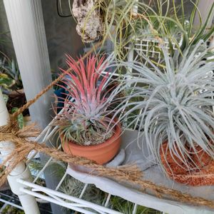 エアプランツの投稿は、 息子のコレクションが多いんですが、 今日は数少ない私のエアプランツをご紹介☝️😉 pic② ハリシー 今年の4月にお迎えした新入りさん あまり動きがないので分かりませんが、 概ね元気そう ୧⃛(◍>ᴗ<◍)୨⃛ pic③ コットンキャンディー 昨年花を咲かせてくれた時は、 枯葉の目立つやつれた姿でした😓 でも水遣りの方法を変えたら、 2つの子株もしっかり大きくなりました (๓´˘`๓)♡ウレピ pic④ テクトラム 昨年、成長点の葉がゴッソリ抜けてしまって 諦めムードでしたが…なんと☆復٩(ˊᗜˋ*)و活☆ 立派な葉が茂ってます(๓´˘`๓)♡ウレピ pic⑤ この中では一番古参の小テクトラム 小さいのから大きくすると意気込んでお迎えしたが、なかなか大きくならず😅 気長に成長を見守ってます☺️ 最近はバケツの水にジャボンと浸けて🪣💧 すぐピッピッと水を切り💦 風通しの良い所へ〜 という方法に変えました! この投稿で700picを迎えました〜! これもGSの皆様のお陰だと、感謝の気持ちでいっぱいです🤗 いつも見ていただき、ありがとうございます(ㅅ´꒳` )❣️ これからもどうぞよろしくお願いします🙏