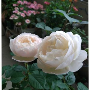 デズデモーナ♡ どの位置で剪定したらいいのかわからないままに秋を迎えてしまいました。 伸びた枝先に揺れながら咲いています😊