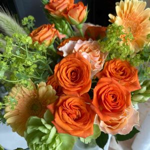 orange&greenで元気いっぱいのアレンジメント💐ちょっと窮屈そうだから花瓶買わないと...😂