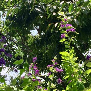 ベランダの端っこにいる 鉢植えデュランタ💜 今年はよく咲いてる😆 「水やり当番」を導入して水切らさないようにしたらその翌日から現金にどんどん咲き出しました❗️ 今の季節は水遣り朝晩しないとすぐグッタリしてお花が咲かなくなっちゃう。水切れると葉っぱも落ちるし。 お水が大好きな植物。 肥料っ気が残ってると葉っぱだけ徒長してなかなか花にならないようで、咲かないなー😥って悩んだ時もありました(笑) 植え替えせずに根詰まり上等。肥料も切って水をガンガン遣る❣️ とよく咲くのね〜😊 地植えなら問題なく旺盛に育つでしょう💚 これもたしか15年くらいは経っているような。 よく育ったなぁ〜。 我が家では冬越しもベランダで。