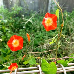 野生のアサガオ?ヒルガオ? いやわざと誰かが種を撒いたのかもしれません 娘とのお散歩中に小学校のフェンスに咲いている小さな花 ところどころに咲いていますが全部紫です