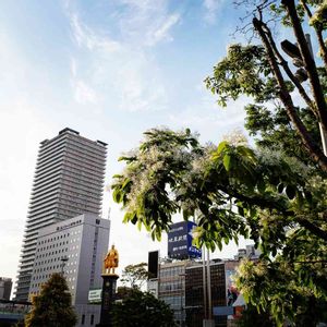 昨日の帰り道。 駅前の広場にある金ぴかの信長像を横目にバス停に。 駅前には、何本かナンジャモンジャの木があります。 (ФωФ)帰りは、信長バスで帰ったのよ。 岐阜市・JR前