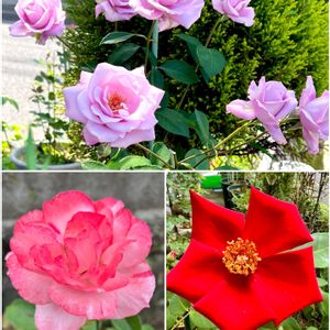 薔薇のシーズンになりましたね♫ ①地植えの薔薇イーナーハークネス 芍薬の近くで開花しました♫ ②ピンクのミニバラ🩷 ③ミニバラ ベビーマスケラード 紫色のバビアナと💕 ④地植えの薔薇 ピンクパンサーが 咲き始めました♫ ⑤地植えの黒真珠も 思い切り開いています😀