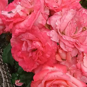 🍀おはようございます🍀 薔薇 ピンクパンサー🌹 地植えです 真上から撮りましたが… モコモコ〜です😊 💐みたい(笑) ☔で傷んだりしていますが よく咲いてくれるだけで 嬉しいです🎶
