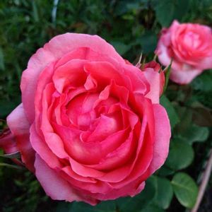 No.15の2 薔薇🌹ピンクパンサー 大輪の薔薇のトリ💖やっと開き始めました💕 朱色から次第にピンクに❤️