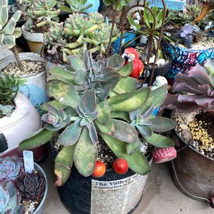 紅の鶴🌈 以前投稿しましたが… 友達からもらった多肉ちゃんの寄せ植えの中の一つ、単独にしたらどんどん大きくなりこの姿に洗濯物を入れてくれた長女が「ベランダに化け物が居る」と😨 友達にLINEで送ったら、「えっ…」と… 成長は続く😆