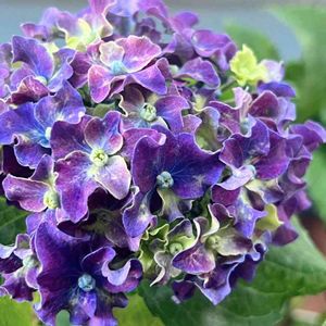 アジサイ カーリースパークル 去年の5月に頂いて、大きくて濃いブルーでとっても豪華なお花でしたが、今年は、小さくて紫色のお花です😅 頂いた時のように咲かせるのは難しい😅💦 でも、今年も咲いてくれて嬉しい😊💜