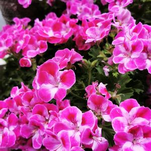 歩道の花壇に満開のベラルゴニウムとスーパーゼラニウムが綺麗でした。🩷🎶💝