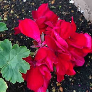 ✨ハイブリッドゼラニウム✨ スーパーゼラニウムチャンピオン💕 赤札でレスキューして2ヶ月 やっと元気を取り戻し、X'masに相応しく真っ赤な可愛いお花が咲きました💖🎅