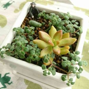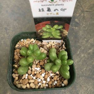 ベンケイソウ科セダム属 ・緑亀の卵 名前の通り、卵!うちにあった亀の消しゴムを載せてみました♪ 写真撮るときだけ笑 卵でっかい!この子には産めんな( ・∇・) 皆さんの投稿を見てると、センベルビウムが欲しくなってきました( ´∀`) 行くお店はどこも、センベルビウムは品種名なしばっかりなので品種名分かるの見つけたら買いたい~
