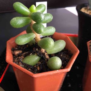 リクエストいただいたので😄 アドロミスクス 松虫です。 葉指しでどんどん増えそうです✨ 後ろはついで?に緑亀の卵と月下牡丹だったかな? 最近の氷点下の寒さに多肉のジュレ化が進んでおります😣💦
