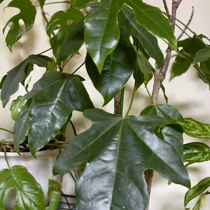 お迎え😊憧れの目玉おやじをお迎えしました😊フィロデンドロンセロームホープ😊モンステラと相性バッチリです👌👍もう一つブラキキトン・アケリフォリウス ブラキキトン・アケリフォリウスは、オーストラリア東海岸原産の落葉高木で、**「フレームツリー」**とも呼ばれ、晩春から初夏にかけて鮮やかな赤い花を咲かせます。幹が膨らみにくく、カエデのような大きな掌状の葉が特徴で、乾燥に強く育てやすい植物です。耐寒性は0℃以上で、冬は室内管理が適しています。 主な特徴 花:晩春から初夏にかけて、木全体を覆うように鮮やかな赤い花を咲かせます。燃えるような見た目から「フレームツリー」と呼ばれます。 葉:カエデに似た掌状の葉で、切れ込みがあり、葉は大きく光沢があります。 幹:ボトルツリーの中でも根本が膨らみにくいのが特徴で、シュッとした樹形になります。 育て方 日当たり:日当たりの良い場所を好みますが、夏の強い直射日光は葉焼けの原因になるため、30~50%の遮光が必要です。 耐寒性:0℃以上で管理するのが適しており、寒さに弱い幼木は冬に室内へ取り込む必要があります。 水やり:乾燥に強いため、土の表面が乾いたらたっぷりと水を与えます。特に冬は乾燥気味に管理しましょう。 フィロデンドロン・セローム・ホープは、一般的なセロームに比べて葉茎が短く、コンパクトにまとまるように品種改良された観葉植物です。深く切れ込んだ大きな葉が特徴で、耐陰性が強く、初心者でも育てやすいとされています。 育て方 置き場所: 年間を通して明るい日陰に置きます。 耐陰性がありますが、暗すぎる場所に置くと葉が軟弱になることがあります。 夏の直射日光は葉焼けの原因になるため、避けるようにします。 水やり: 春から秋の成長期には、土の表面が乾いたらたっぷりと水を与えます。 冬は成長が緩やかになるため、水やりの頻度を減らし、土が乾いてから数日後に水を与えます。 過湿になると根腐れの原因となるため、水はけの良い土を使うことが重要です。 用土: 水はけがよい用土を好みます。